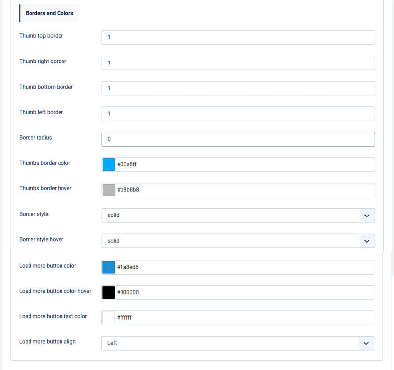 Thumbs border hover: set a color for the border of the thumb when mouse-over.
