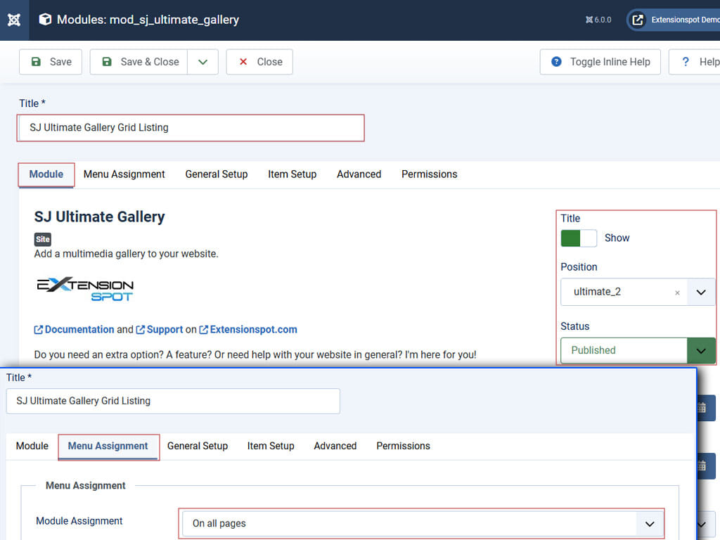 | Menu Assignment | Choose the pages where the gallery should appear |