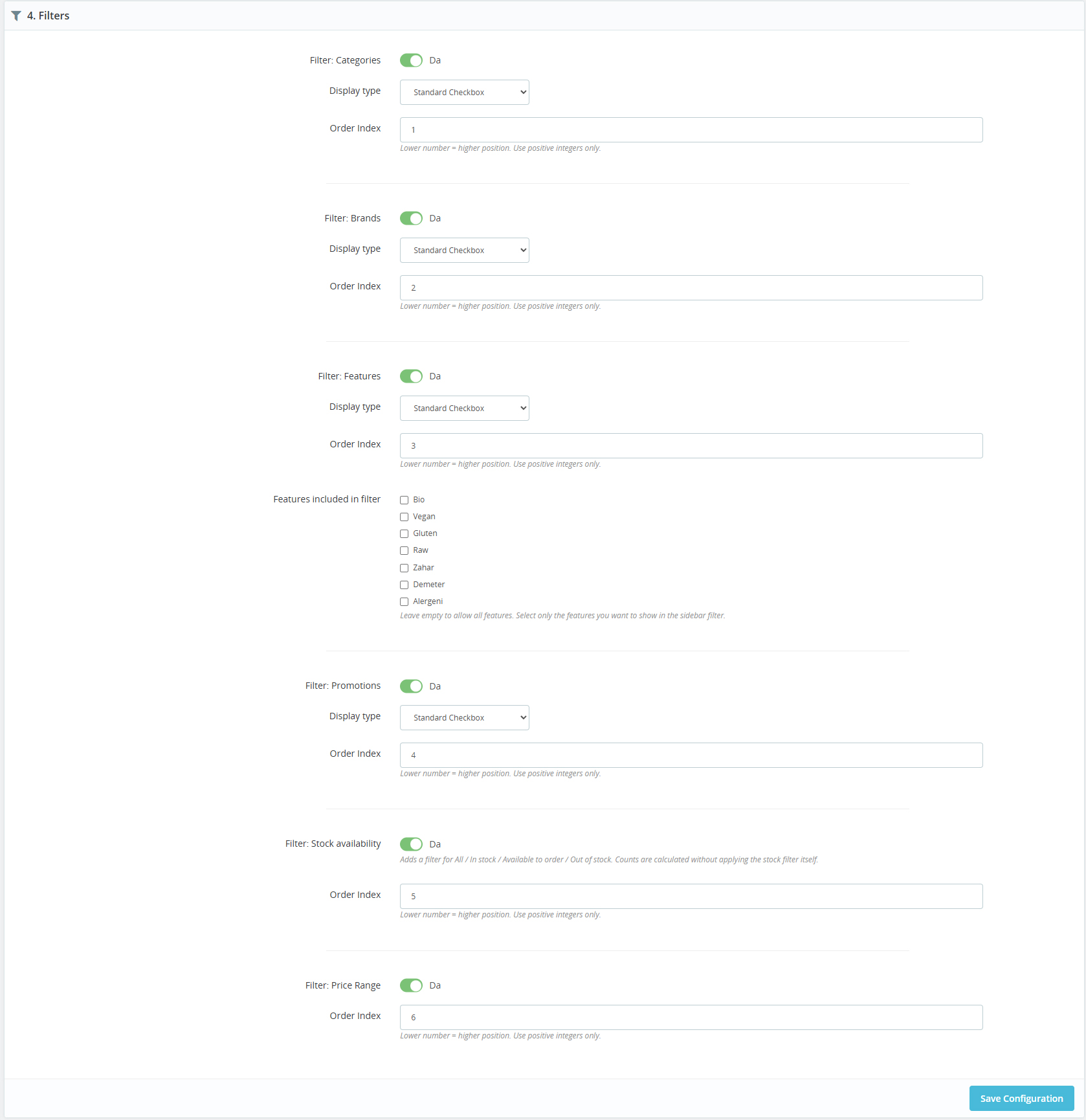 Yes. Categories, brands, features, promotions, stock and price filters are supported.