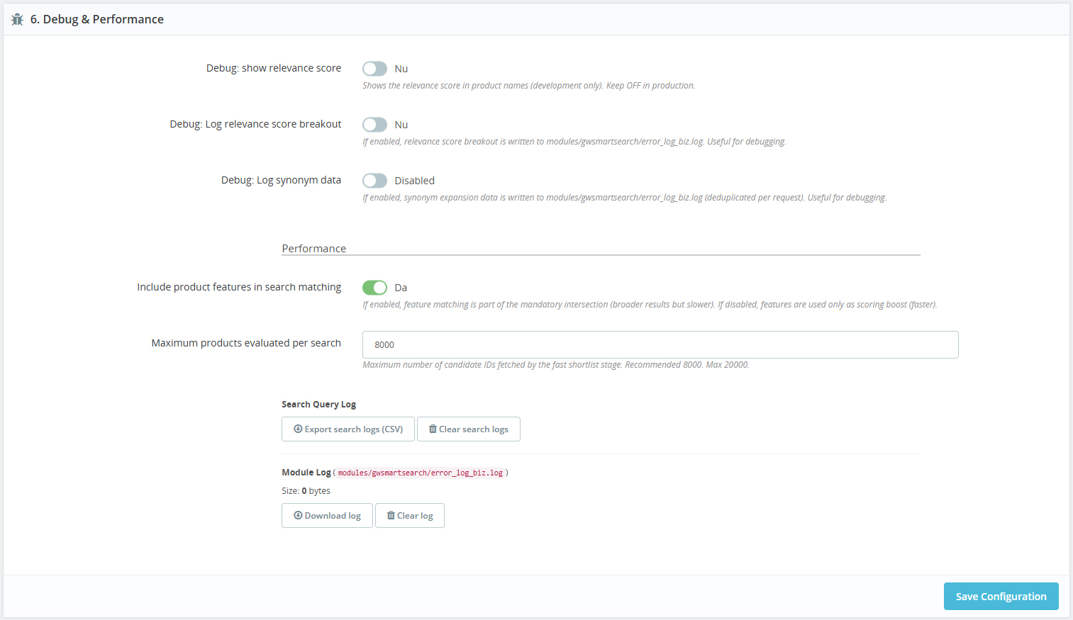 Understand how search behaves with debug tools, query logs, and exportable data for easier optimization.
