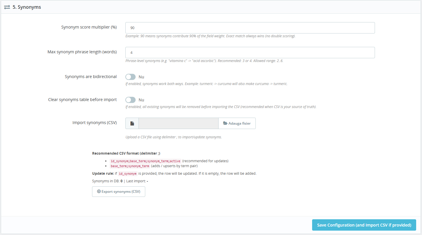 Synonym engine with CSV import